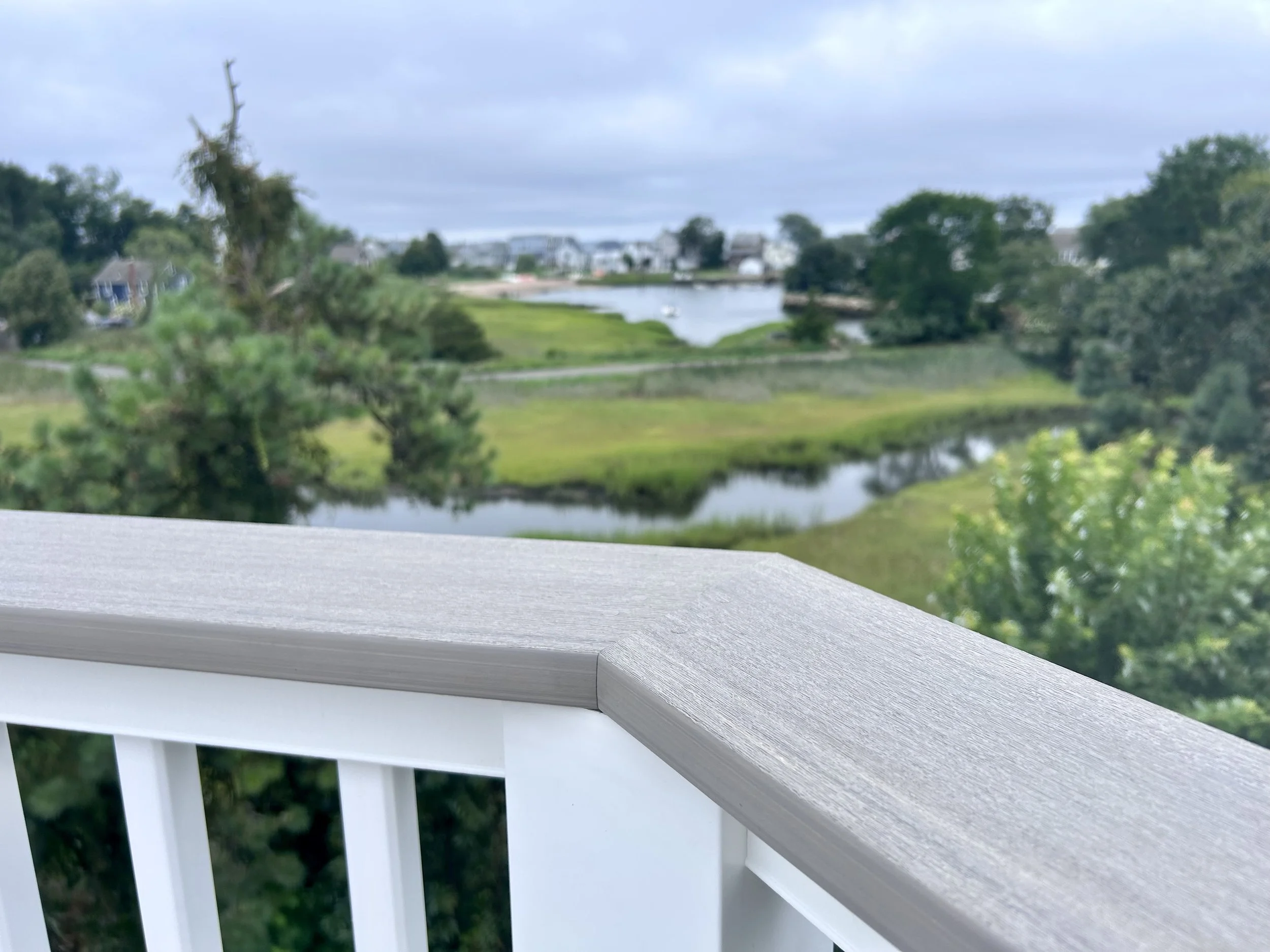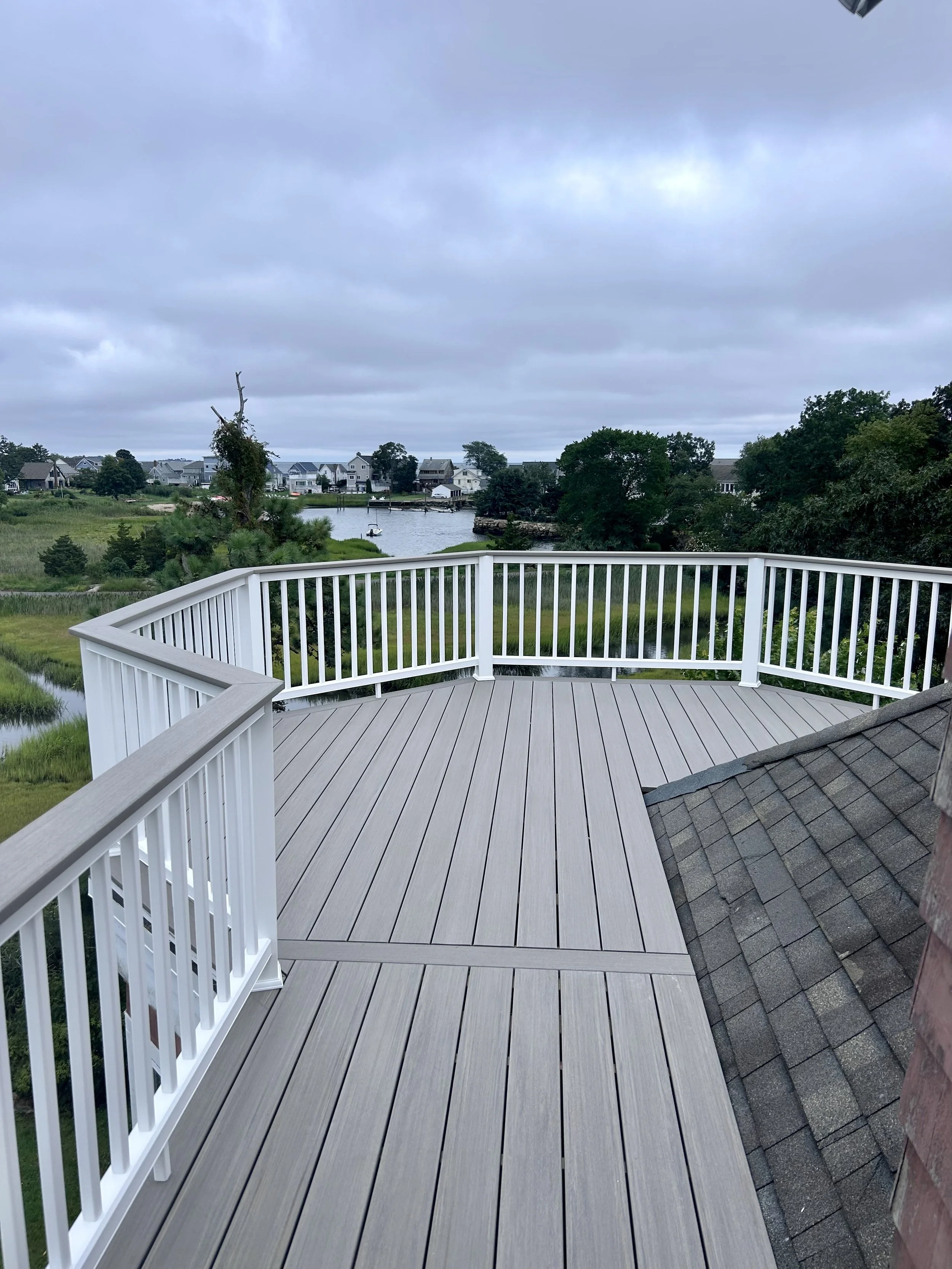 As phase one of many phases of a full exterior facelift for this home in Branford, we rebuilt this third floor balcony deck with an incredible view of the Long Island Sound.